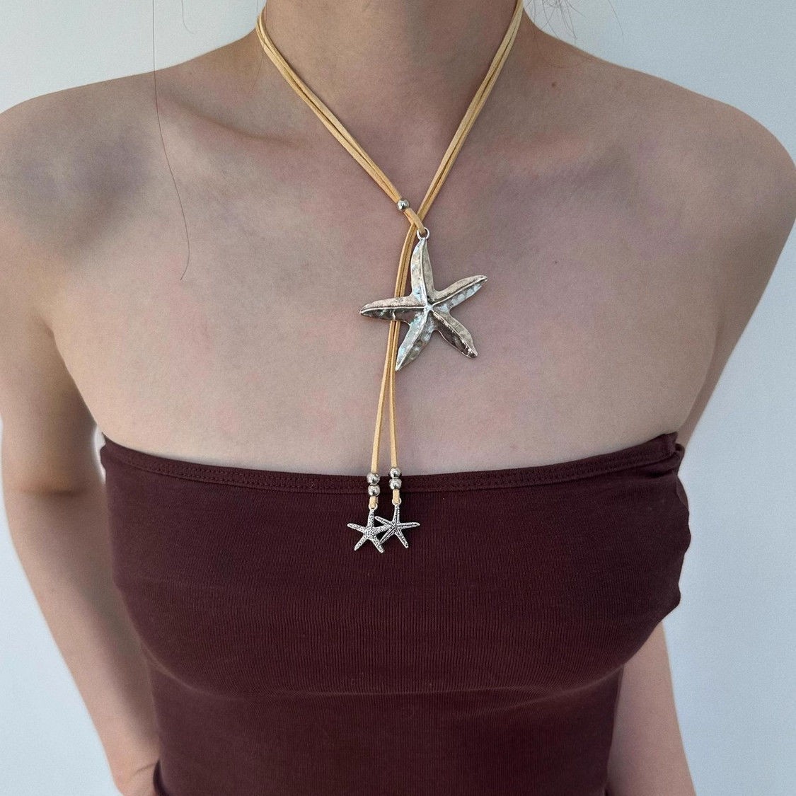 Retro Ins Style Starfish Pendant Bohemian Necklace Various Wear Method Puleather Seaside Holiday Style Necklace