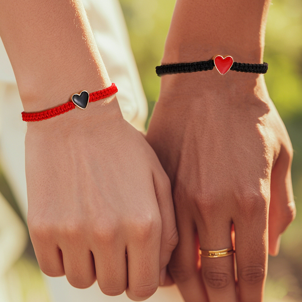 Handmade Red Rope Contrasting Heart-Shaped Bracelet, Simple and Adjustable Jewelry Texture, Unisex Cross-Border Hot-Selling Gift