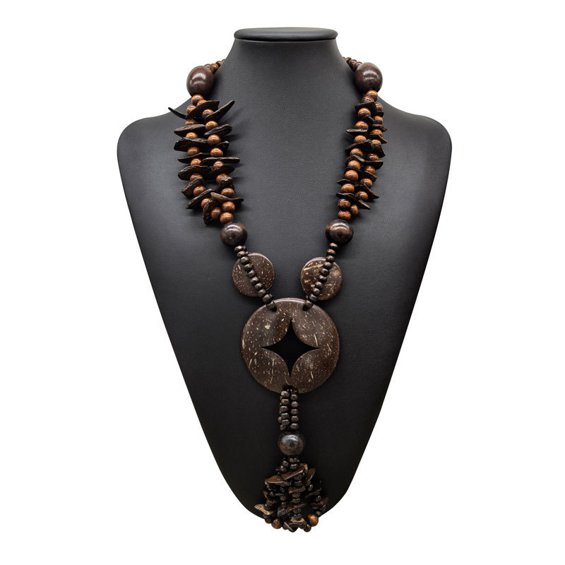 Bohemian brown Round Coconut Shell Wood Beads Y Long Woolen Chain Beach African Women Necklace necklace