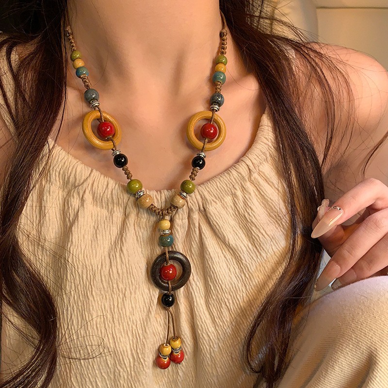 Retro Bohemian Style New Chinese Zen Ceramic Necklace Women's Exotic Ethnic Style Long Sweater Chain Accessories