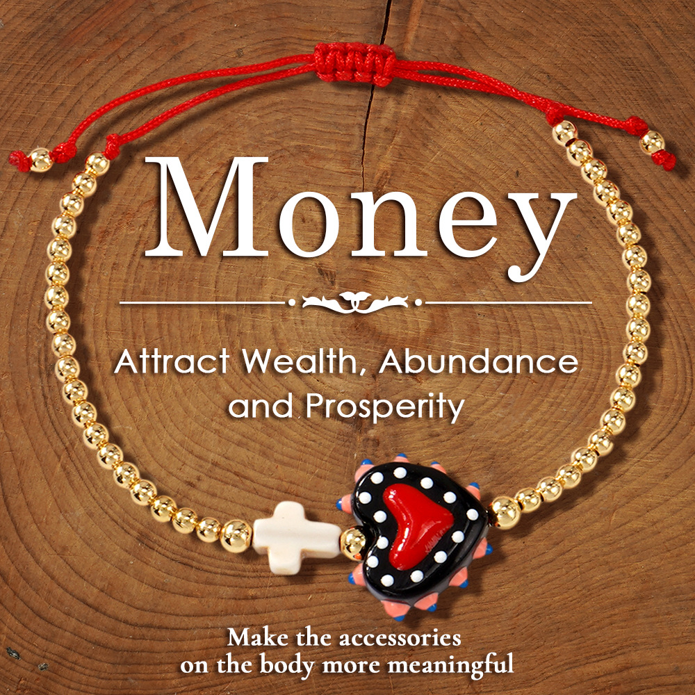 2025 European and American Style Cross-Border New Colorful Cross Heart Bracelet with Gold Beads Embellishment, Light Luxury Fashion Temperament Jewelry