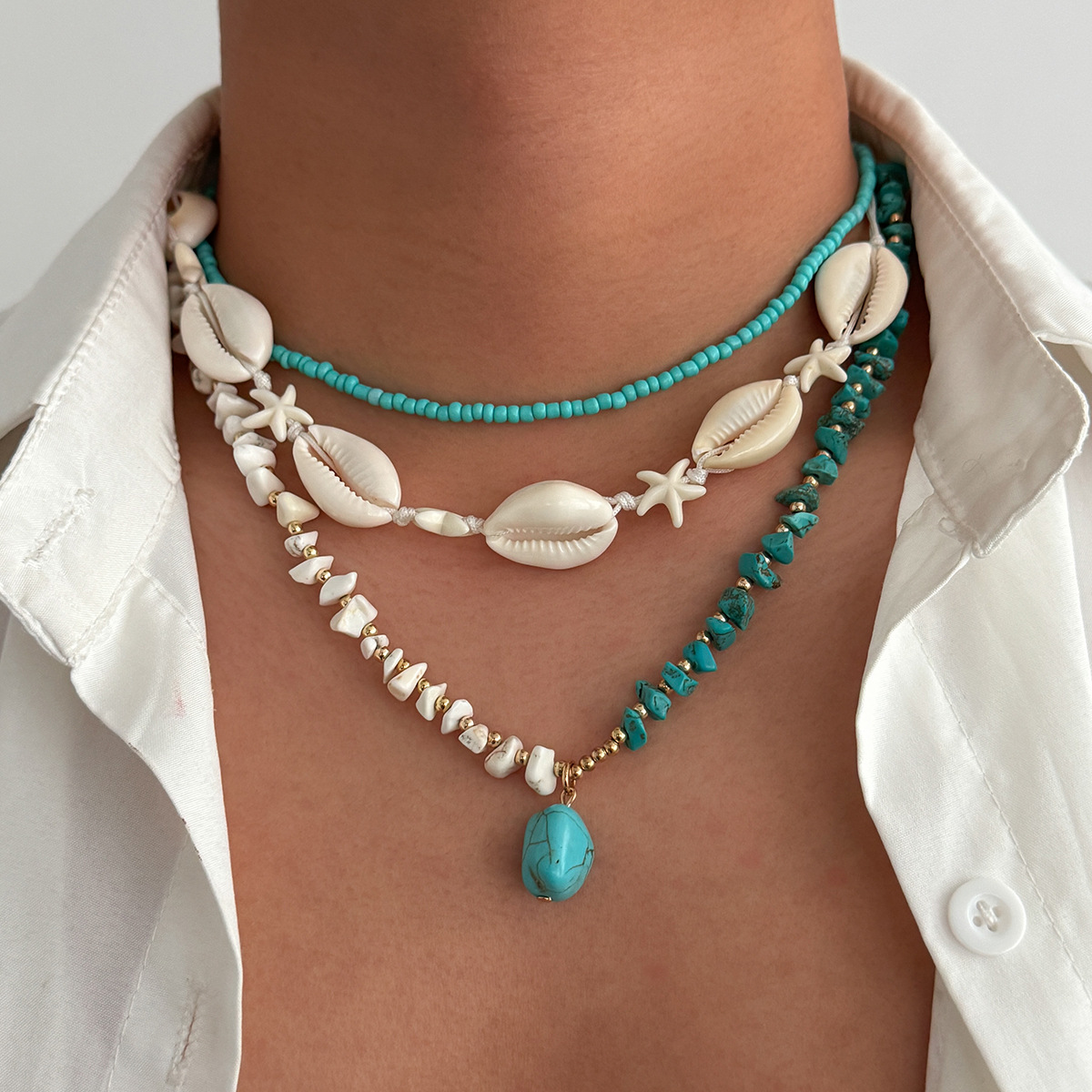 European and American Bohemian Starfish Beads y2k Mermaid Ji Shell Casual Necklace Niche Vintage necklace