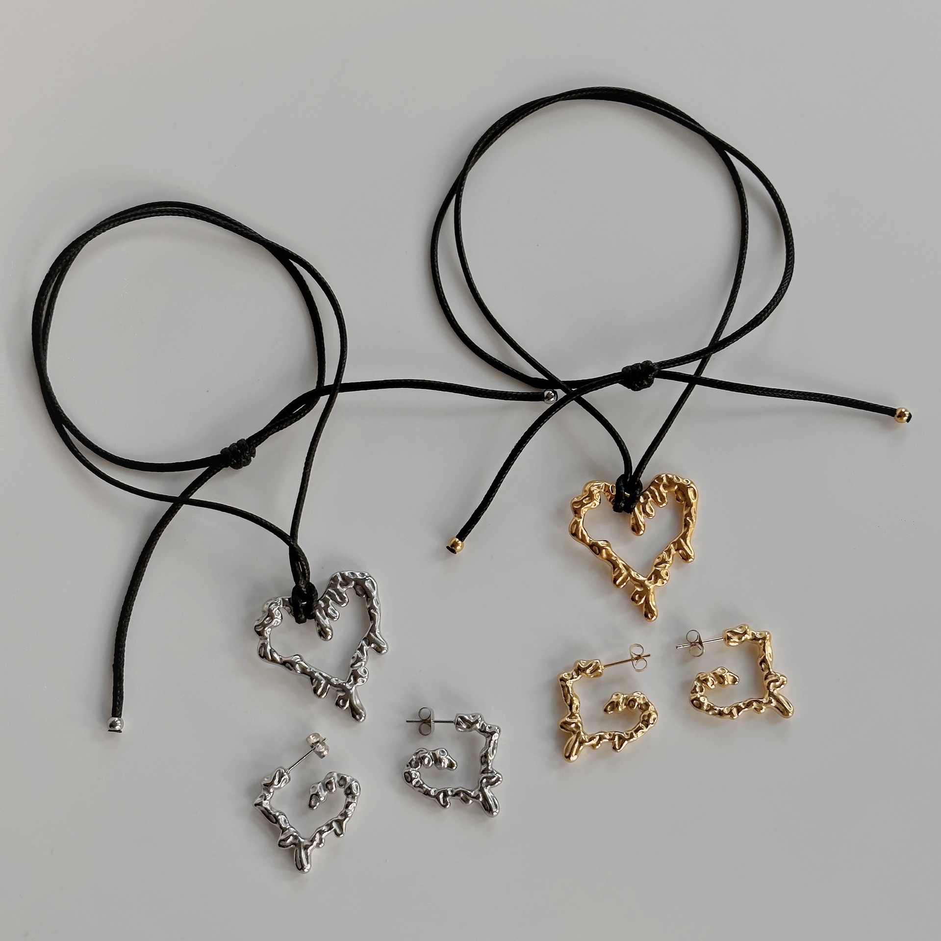 Spot Factory Wholesale European and American Cross-Border Fashion Titanium Steel Boho Retro Peach Heart Leather Rope Chain Necklace Earrings Set
