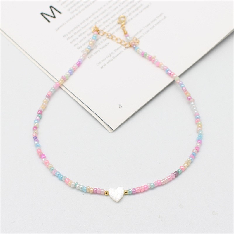 Amazon Fashion Bohemian Love Fritillaria Pendant Rice Bead Necklace Multicolor Color Simple Clavicle Chain