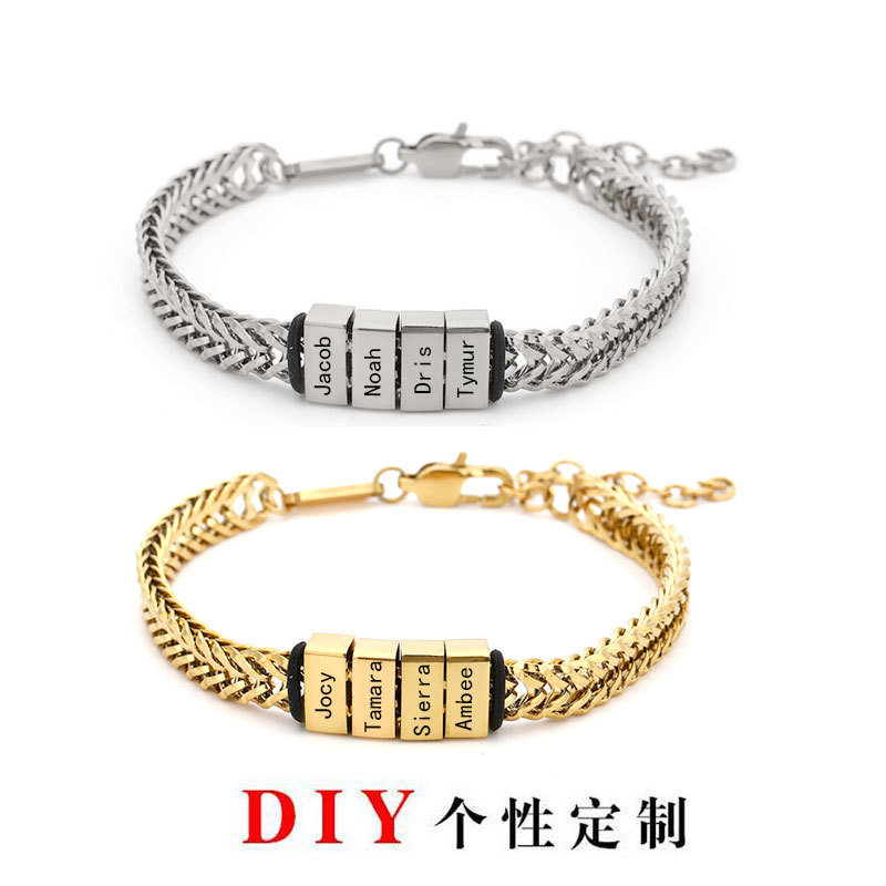 Cross-border hip-hop titanium steel name bracelet father's day DYI lettering bracelet men's jewelry gift bracelet jewelry wholesale