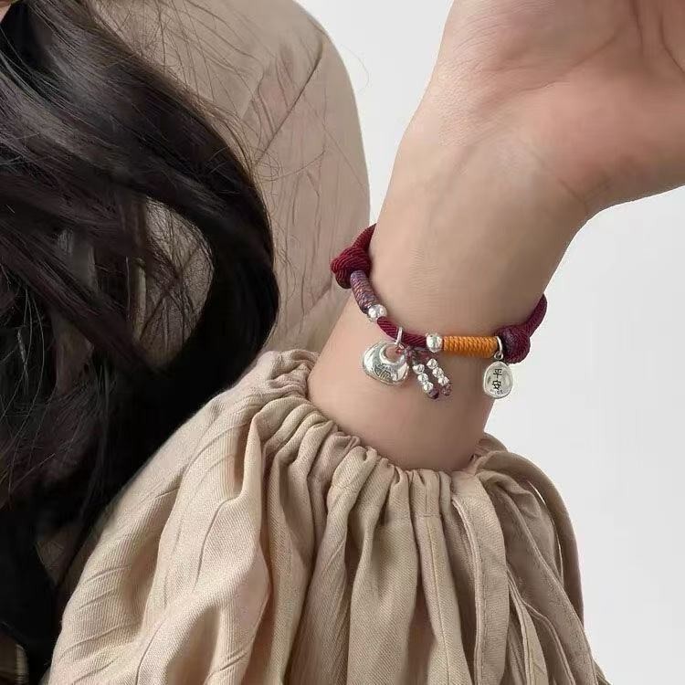 Silver Tuo Tuo Solid Ping An Chubby Fu Bag Red Rope Bracelet Knot Rope Hand Rope Couple Male and Female Gift Pair