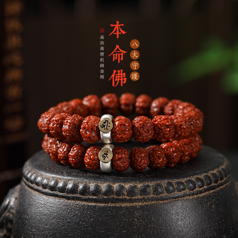 Zodiac Sign Machine Brushed Small Rudraksha Root Bracelet for Men, Walnut Toy, Zodiac Sign, Buddha Bodhi Beads, Single Circle