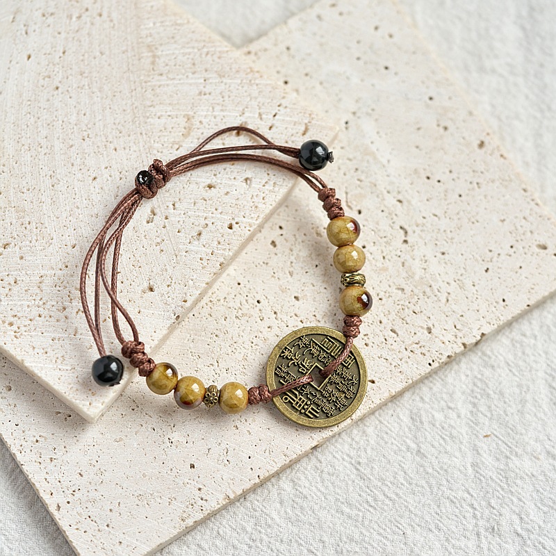 New Jingdezhen Ceramic Bracelet Women's Original All-match New Chinese Style Woven Copper Money Woven Hand Rope Antique Jewelry Women