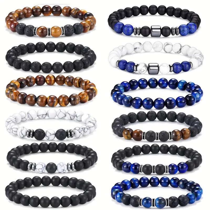TK cross-border explosive bracelet 12-piece tiger eye stone foreigner crystal natural volcanic stone suit wholesale