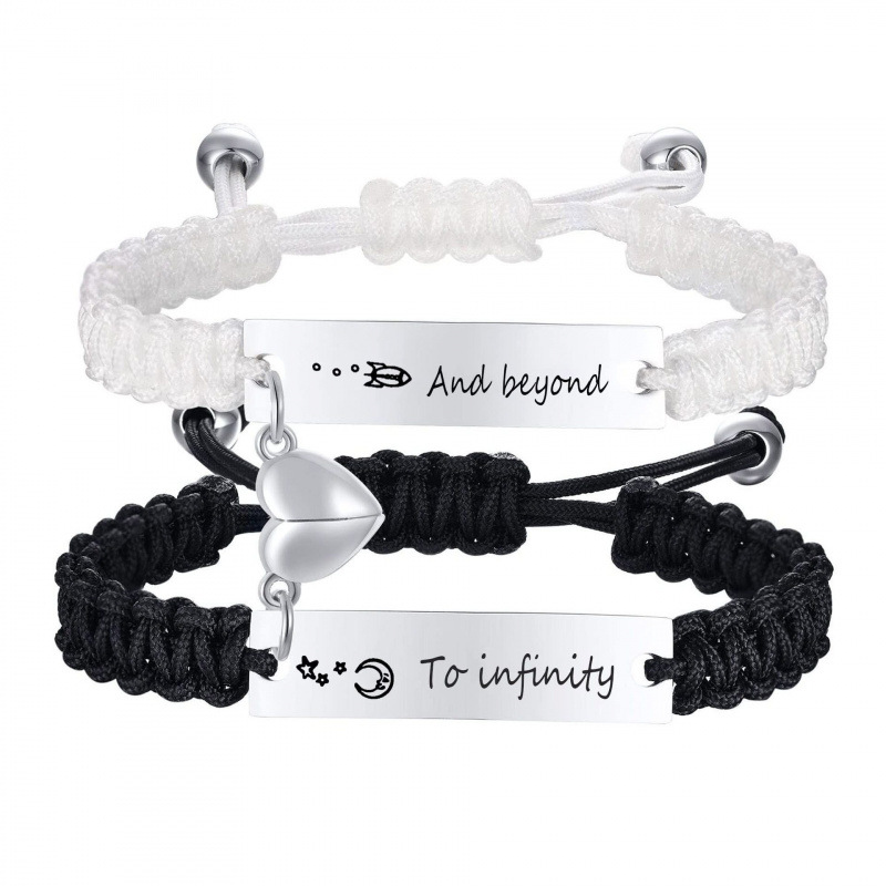 Stainless Steel Bracelet suit Bend Card Engraving Couple Black and White Rope Woven suit Love Heart Magnetic Absorption Black and White Woven Bracelet