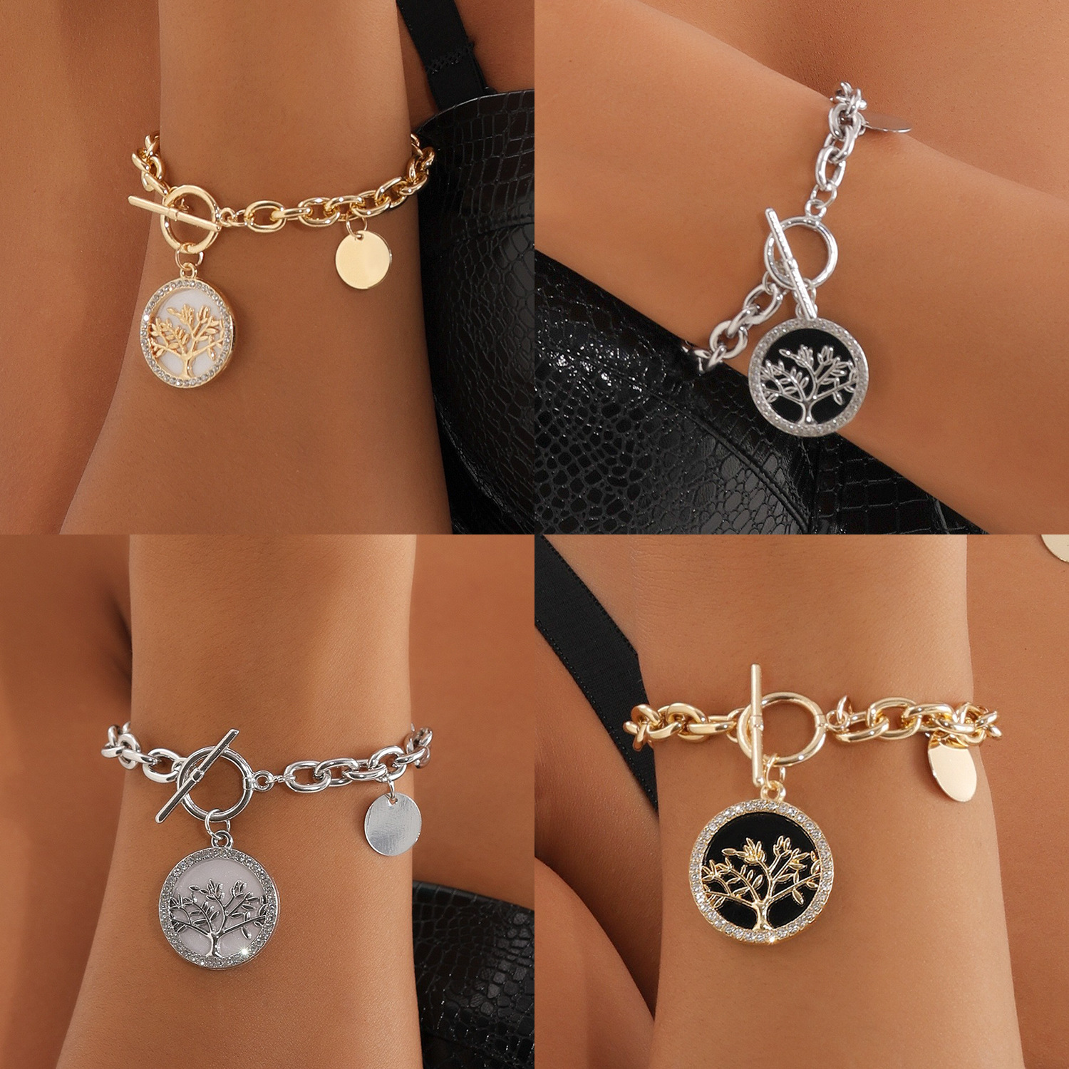 Europe and the United States cross-border jewelry geometric thick chain otbuckle round black and white fritillary bracelet women's ins simple personality hand ornaments