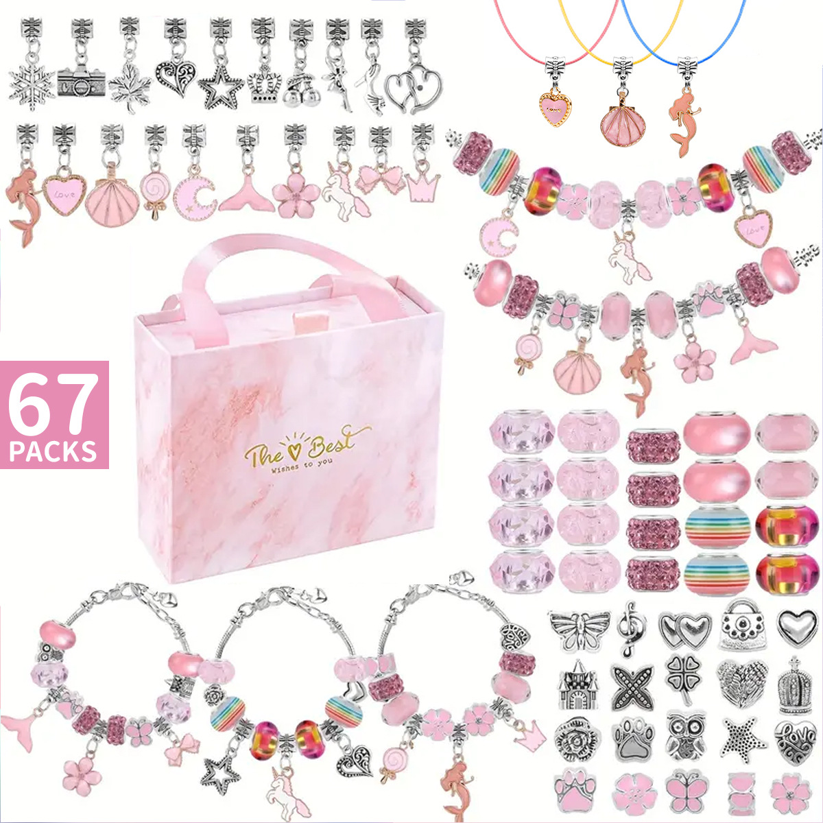 Cross-border Hot 67PCS Box High Colorful Glaze diy Children's Bracelet suit Unicorn Handmade suit Girl Gift