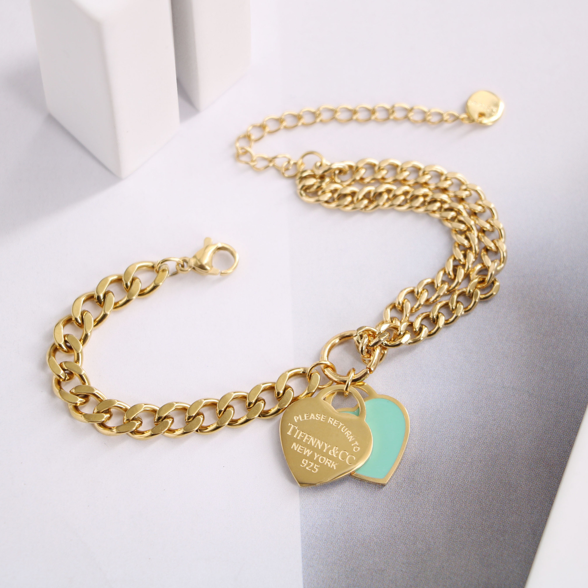 Titanium steel 18K gold T home Classic Blue Love asymmetric bracelet women's fashion commuter all-match style