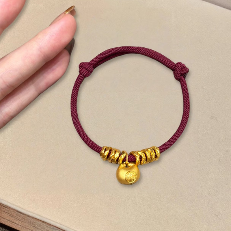 New Chinese-Style Chubby Fortune Bracelet for Women with Personalized Small Gold Nugget Pendant, Good Luck Red String Bracelet for Girlfriend's Zodiac Year