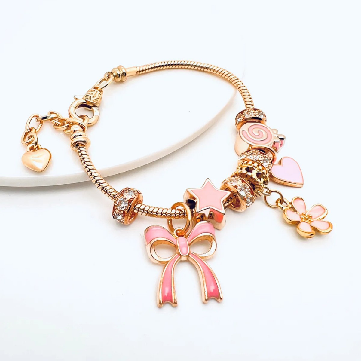 Fashion 18K Gold-Plated DIY Colorful Crystal Beads Heart Pendant Ladies Panjia Charm Bracelet Bracelet Colorful