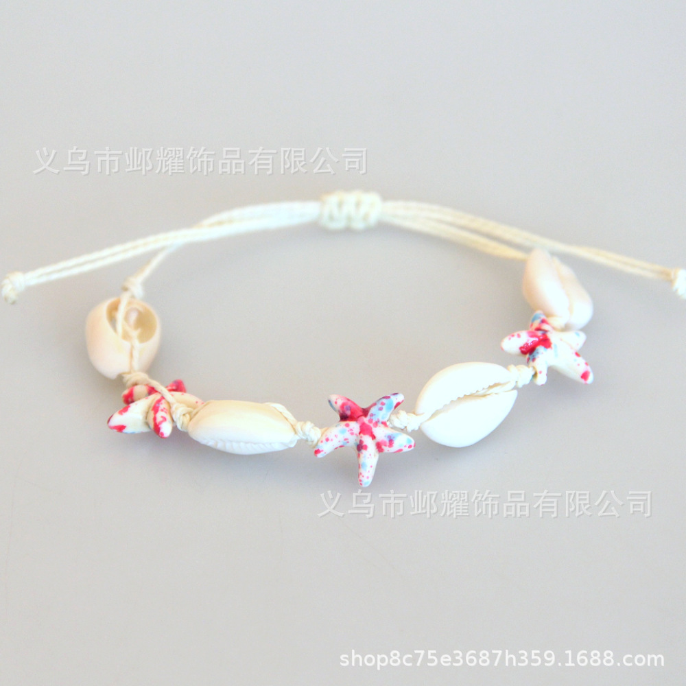 25 New Summer Beach Vacation Style Starfish Bracelets Wax Thread Shell Bracelets Women's Bohemian Beaded Jewelry Handmade