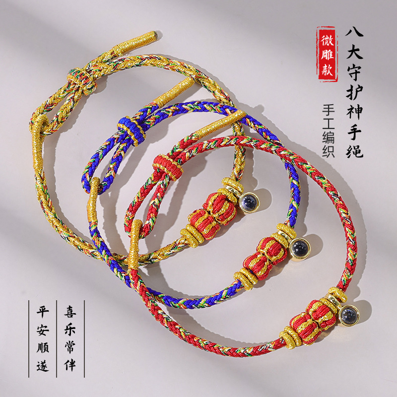 Hand-Woven Eight Guardian Angel Bracelet with Micro-Carved Projection of the Shurangama Mantra, Zodiac Year Red String Bracelet for Women