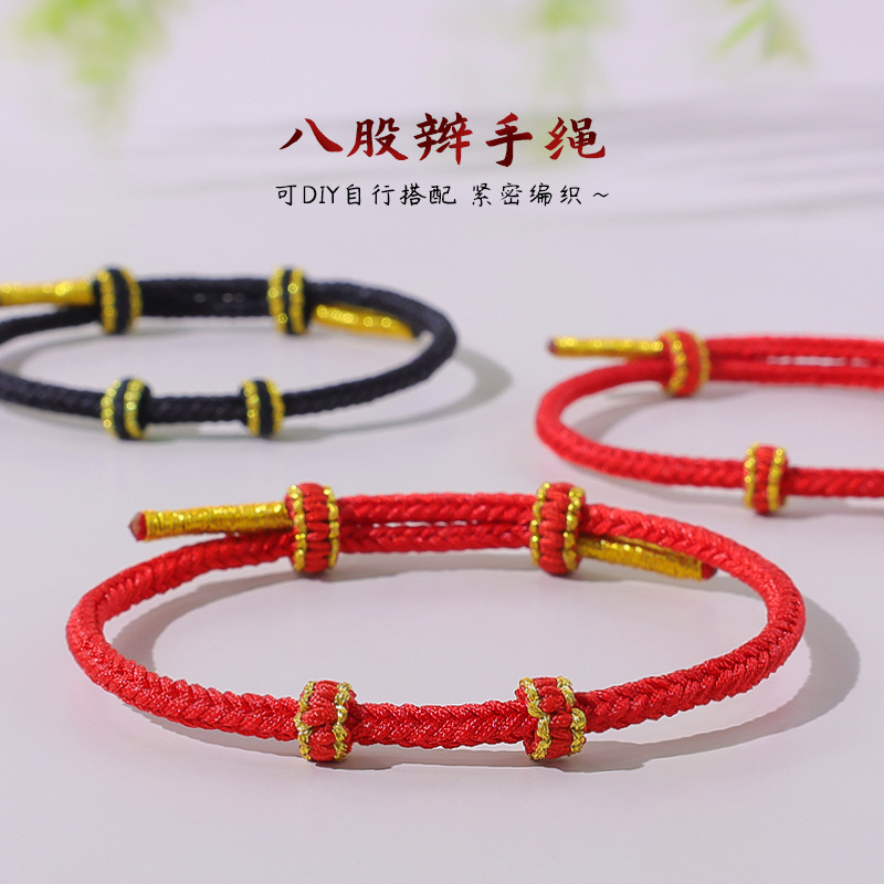 Hand-Woven Red Rope Bracelet Semi-Finished Product for Women Wearable DIY Gold Jade Two-Way Adjustment 2.8mm Bracelet Wholesale