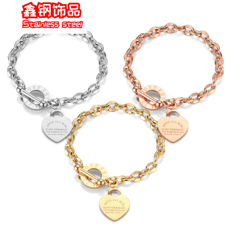 in stock European and American ins style stainless steel chain peach heart love bracelet niche design all-match OT buckle titanium steel women