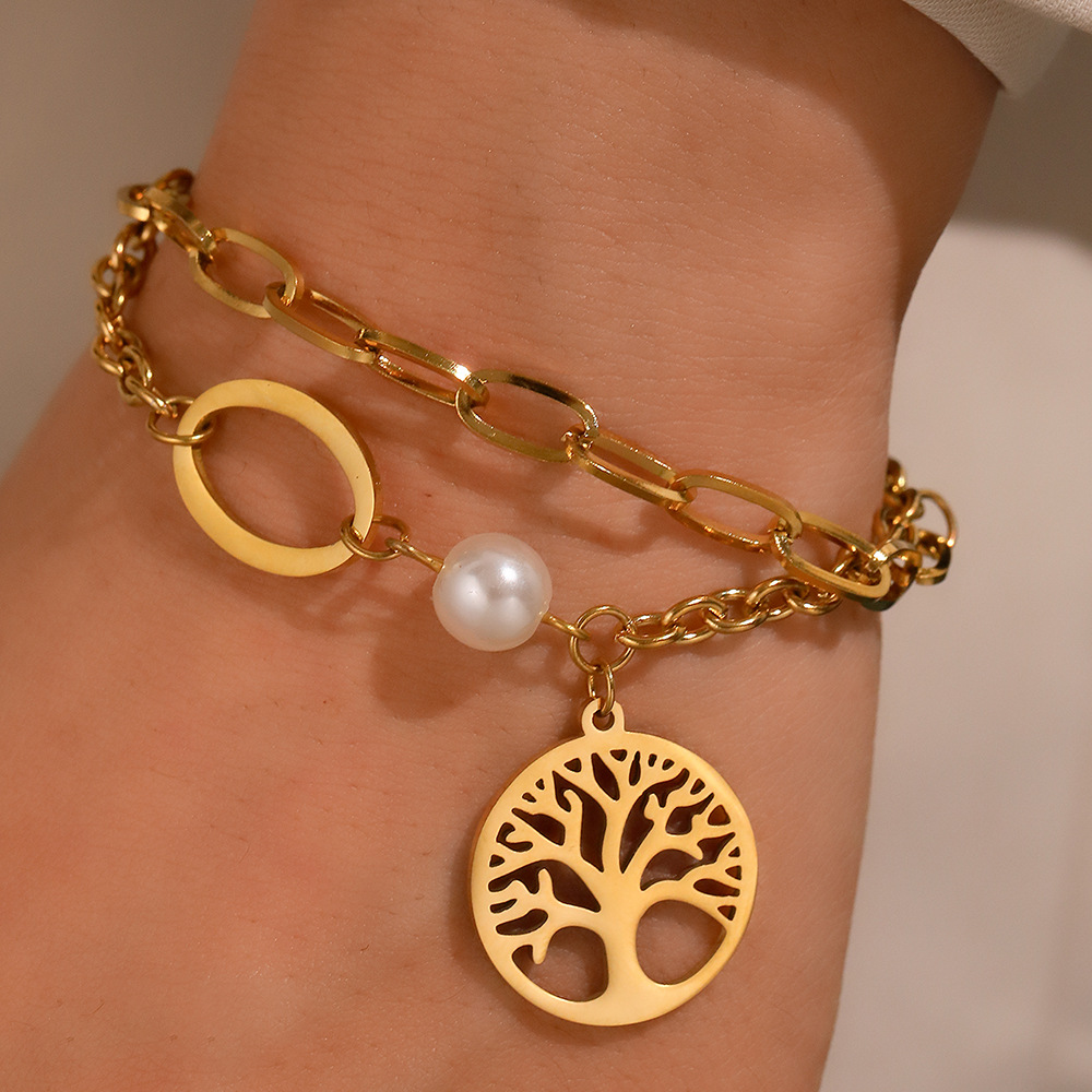 2024 fashion new stainless steel tree of life wholesale light luxury high sense pearl stainless steel bracelet for women