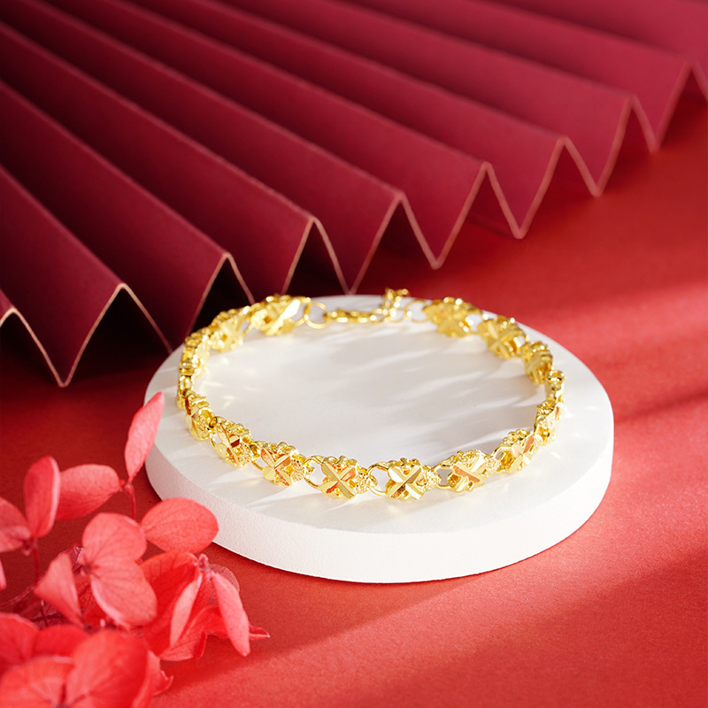 Sand Gold Four-Leaf Clover Chain Bracelet for Women That Will Not Fade for a Long Time, Simulated Pure Gold 999 Gold-Plated Jewelry, One Piece Drop Shipping