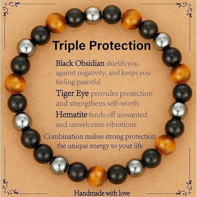 Cross-Border Popular Obsidian Magnet Tiger Eye Flat Knot Braided Adjustable Bracelet Tiger Eye Stone Triple Protection Bracelet for Women