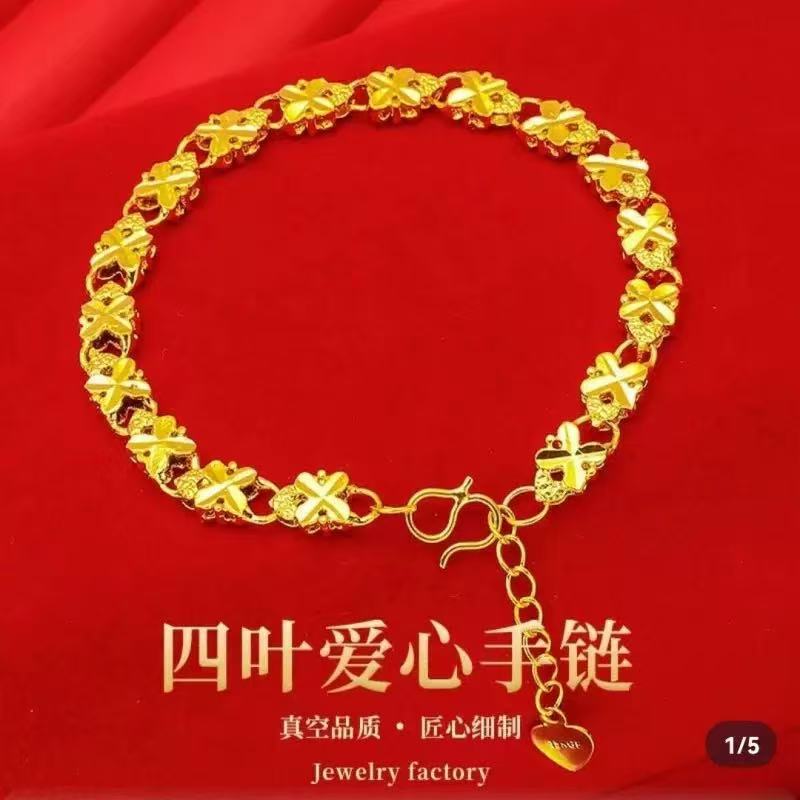 Vietnamese Sand Gold Four-Leaf Clover Bracelet for Women, Imitation Gold Store Same Style Niche Five-Flower Bracelet Live Broadcast Hot Supply