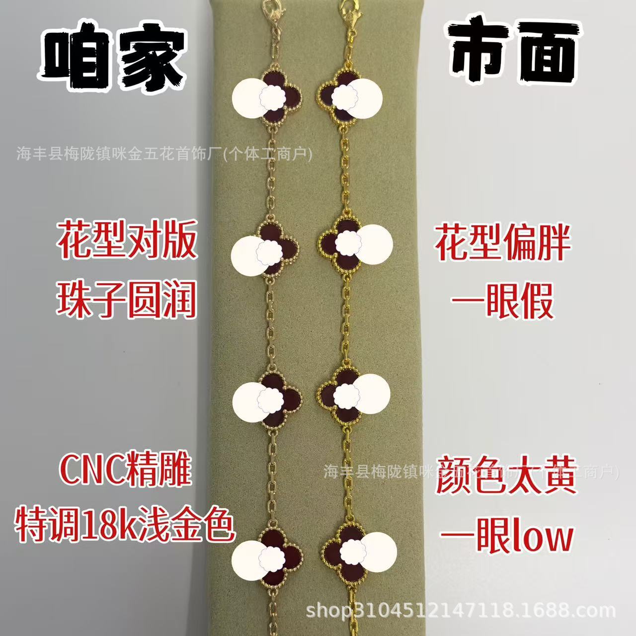 Ceiling Slim Flower V Gold Four-Leaf Clover Five-Flower Bracelet for Women, Exquisitely Engraved Cnc Thick Plated 18K Hand Jewelry, Factory Direct Sales and Dropshipping