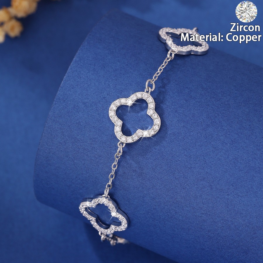 2025 New Simple Lucky Four-leaf Clover Bracelet for Women French Sweet High-end Full Diamond Zircon Four-leaf Flower Bracelet