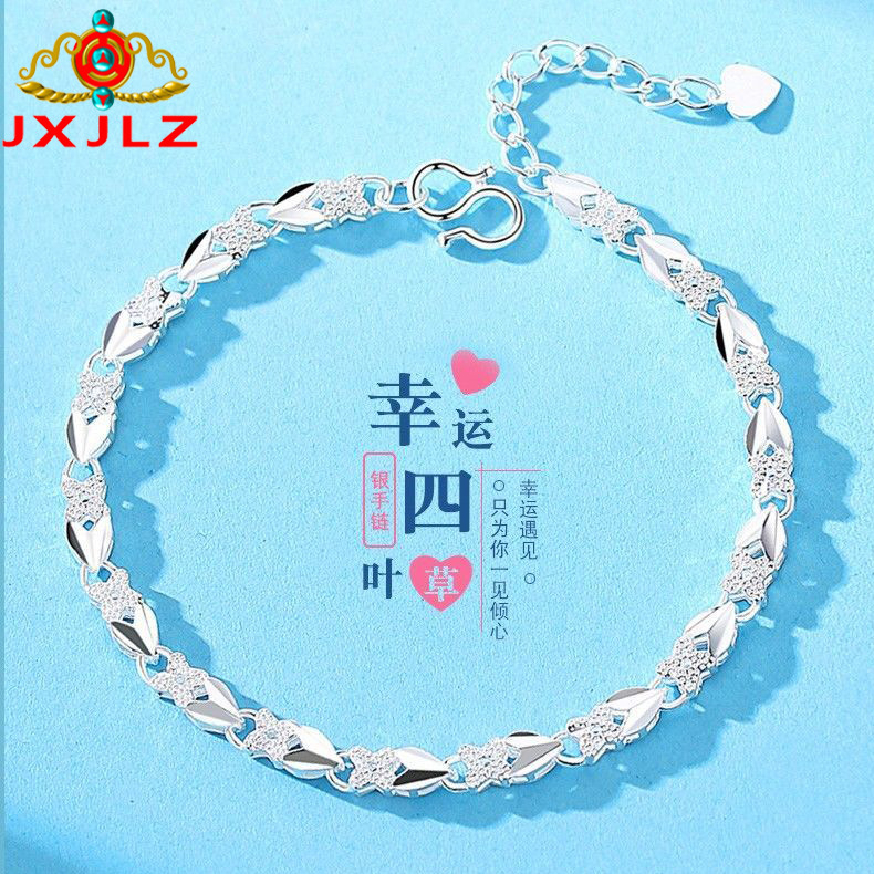 Jupiter Heart-Shaped Four-Leaf Clover Silver Bracelet Lucky Female Couple Japanese and Korean Trendy Factory Live Supply Dropshipping