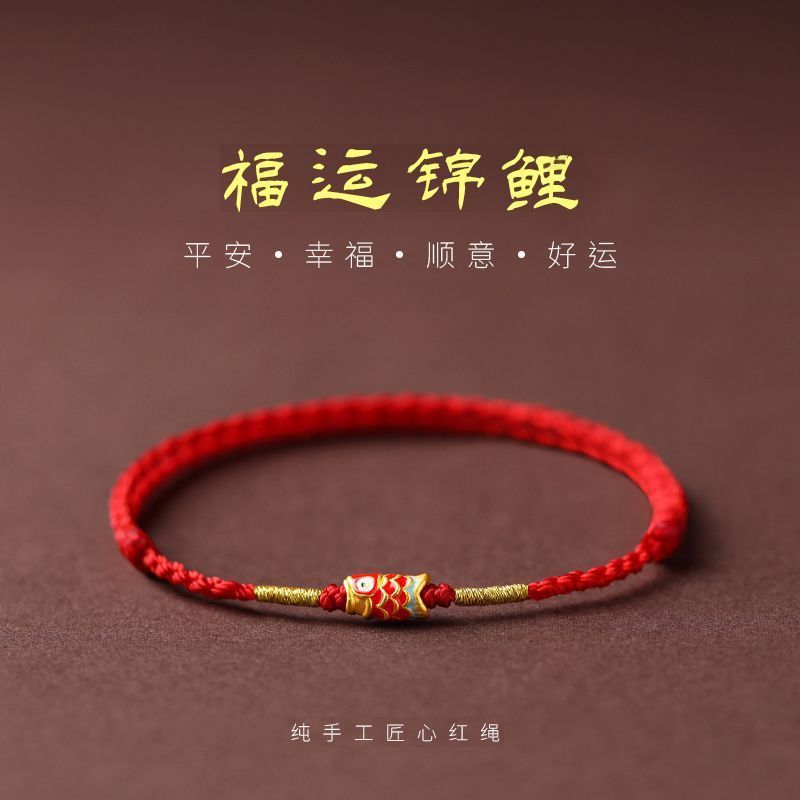 Paris French Red Rope Gold Plated Year of Life Single Diamond Red Rope Half Rope Half Chain Bracelet Bracelet Couple Gift Women