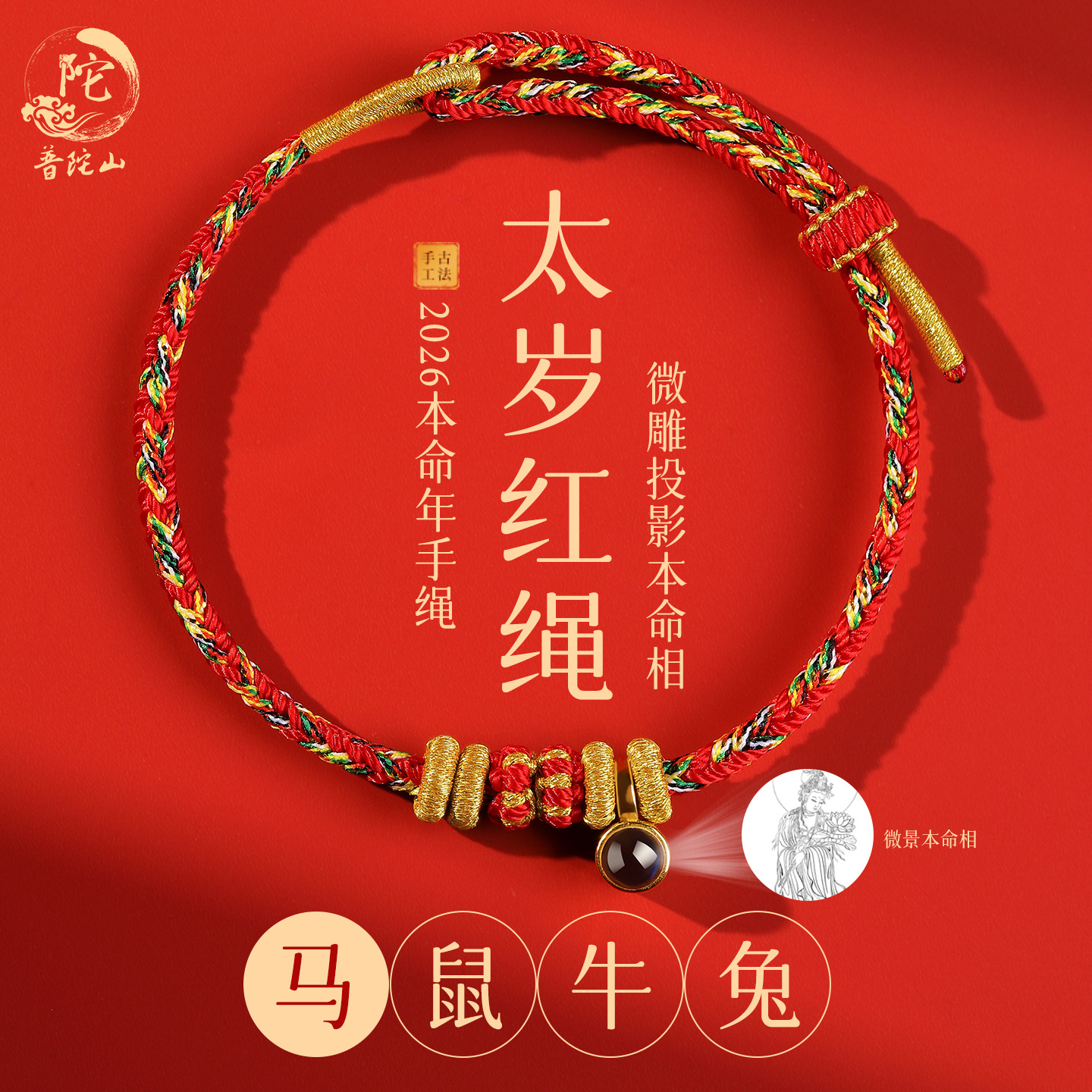 Putuo Mountain Year of the Horse Tai Sui Red Rope Bracelet Women's Zodiac Year Small Red Rope Braided Red Bracelet 2026 New Amulet