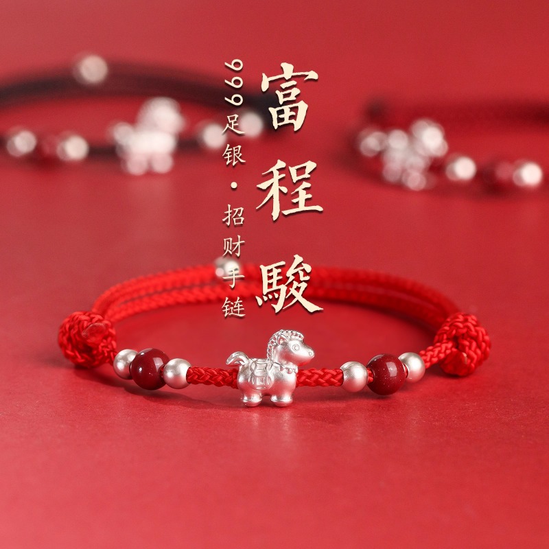 Pure Silver Year of the Horse Zodiac Red Bracelet for Women, Woven Rope, Light Luxury Niche Exquisite Gift