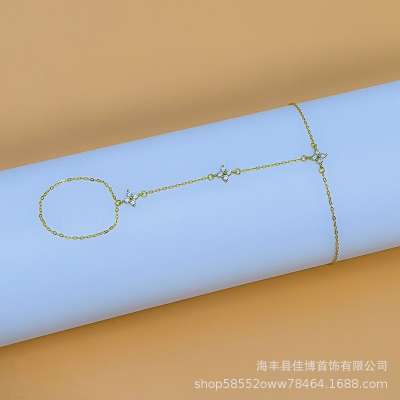 Cross-border AliExpress new s925 sterling silver hand women's ring chain four-leaf flower bracelet stacked wholesale