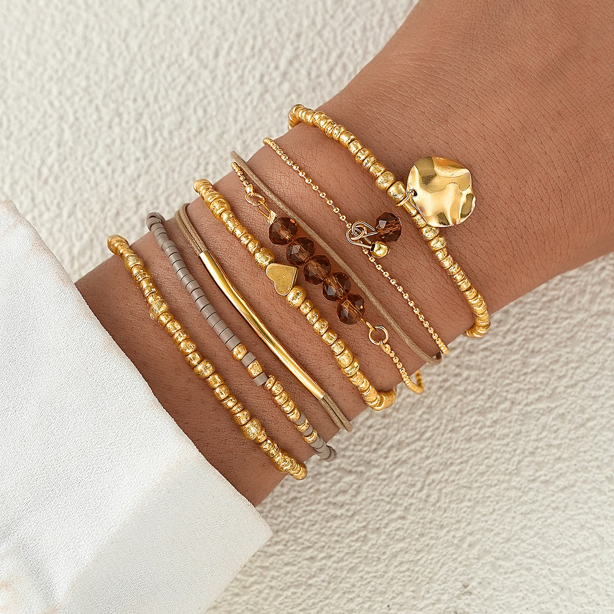 Cross-Border Hot-Selling Fashion Versatile Trendy Bohemian Style Crystal Rice Beads Handmade Beaded Bracelet Set Seven-Piece Set