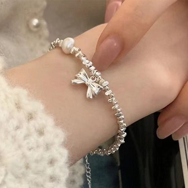 2024 New Niche Exquisite Broken Silver Bow Pearl Bracelet Women's Summer Simple Light Luxury High-end Jewelry