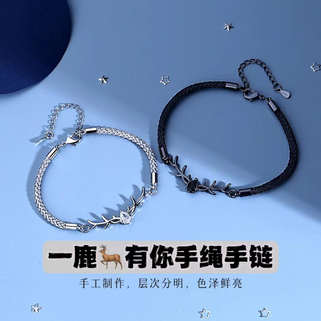 A deer has you lovers bracelet long-distance love Valentine's Day gift Korean ins men's and women's hand rope diamond antler bracelet