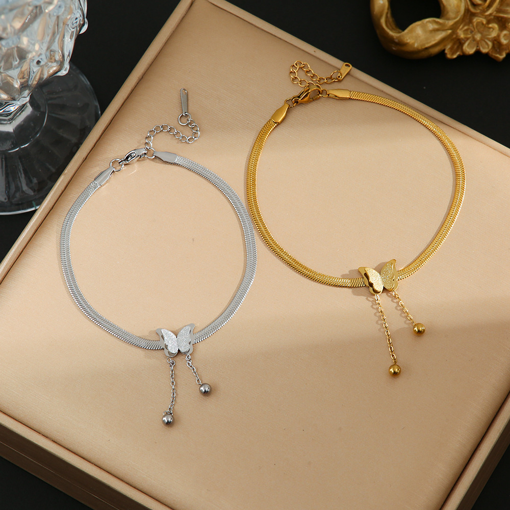 Cross-border Explosive Frosted Butterfly Tassel Titanium Steel Bracelet Women's Fashion All-match Simple Light Luxury Elegant Color-free Bracelet