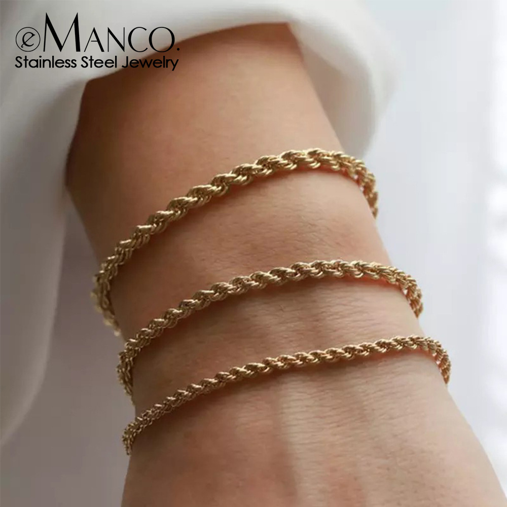 Emanco New Twist Chain Bracelet Women's Hip Hop Punk Gold Stainless Steel Bracelet Gold Plated Hand Jewelry Wholesale