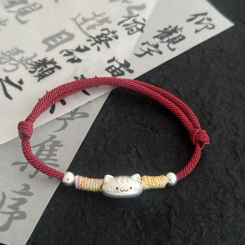 French Baguette Cat Bracelet for Women, Handmade, Adjustable, Light Luxury, Versatile, Simple Gift for Best Friend