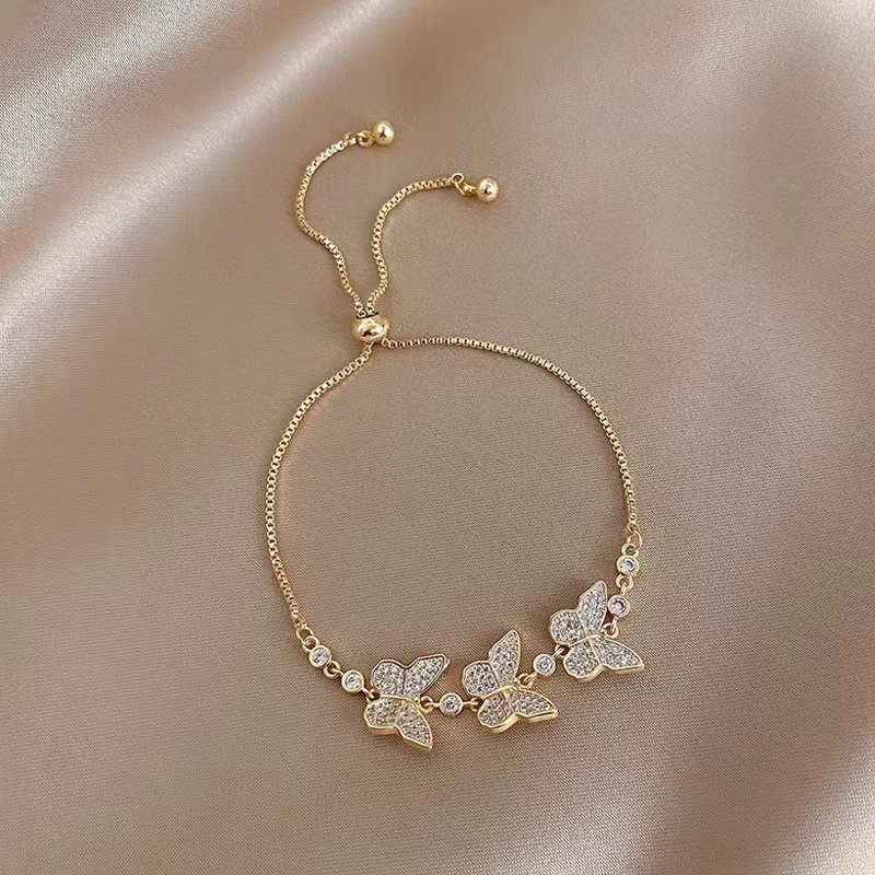 Fashionable Butterfly Micropaved Zirconia Bracelet Women's Ins Adjustable Bracelet Fashion Internet Celebrity Temperament Jewelry Bracelet