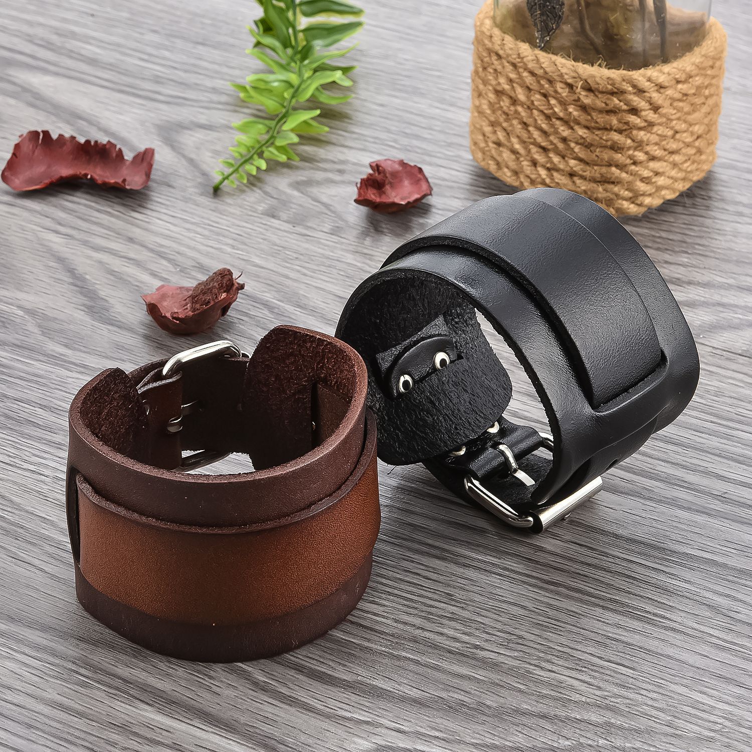 Cross border leather bracelet wholesale Europe and the United States new men and women wide leather bracelet punk rock bracelet leather bracelet men