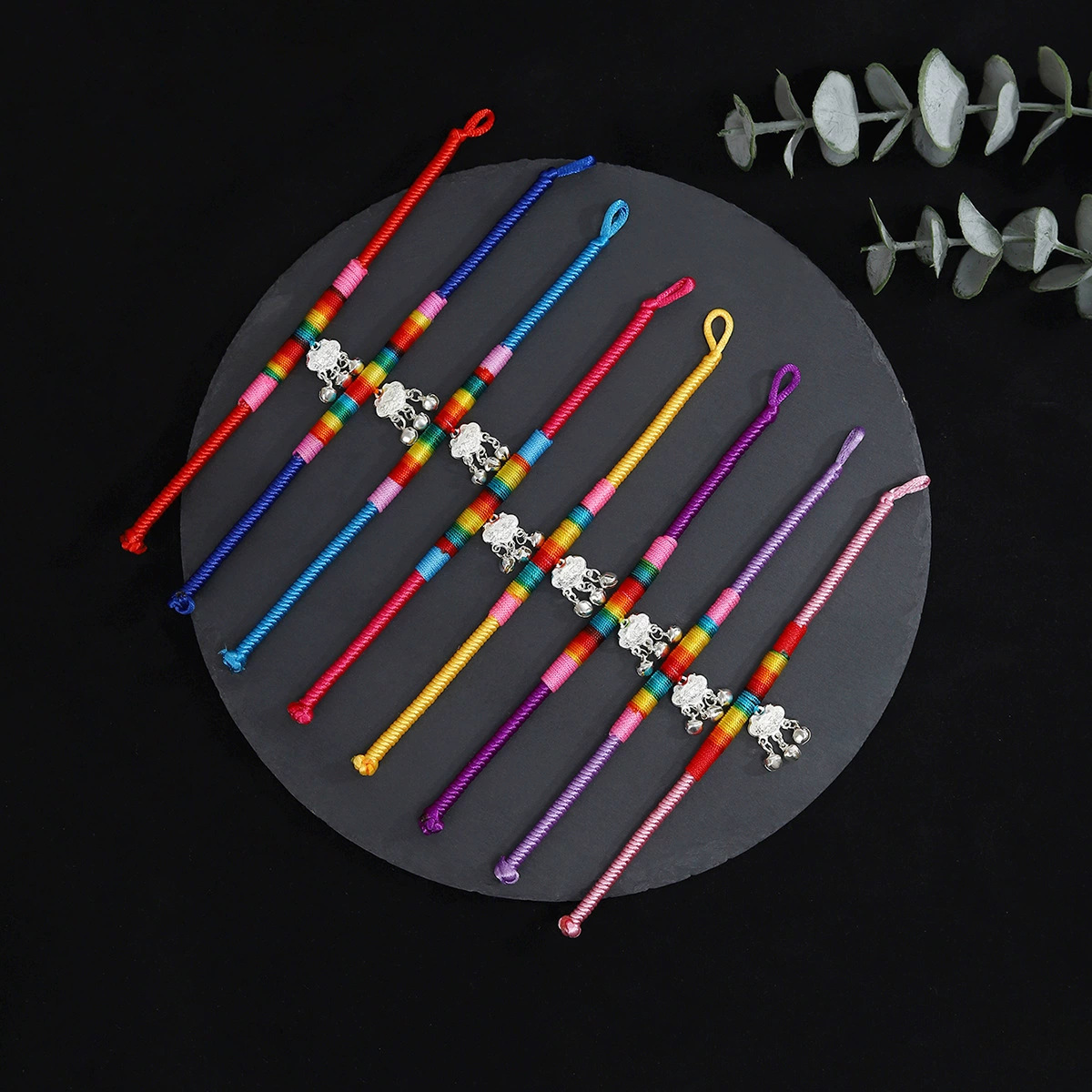 Ethnic Style Color-matching Colorful Rope Long Life Lock Bell Bracelet Women's Travel Style Xizang Style Retro Diamond Knot Peace Rope