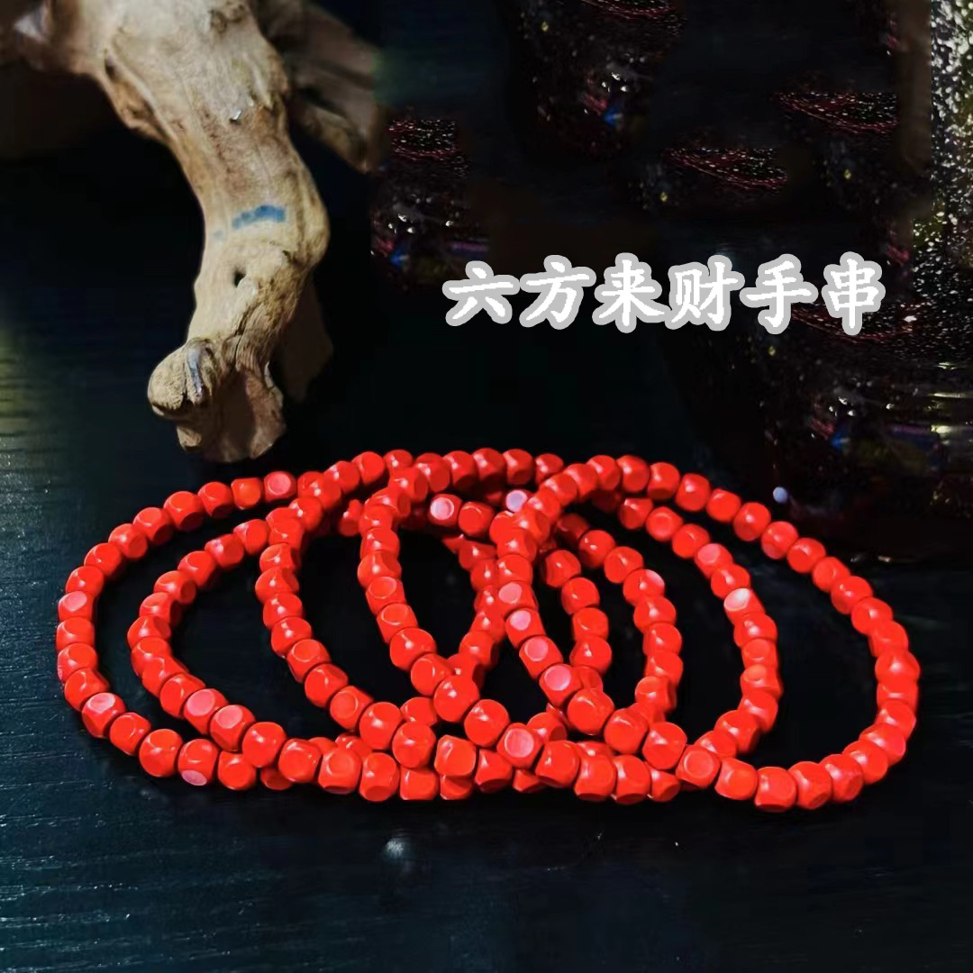Pure natural net red raw cinnabar bracelet red sand ring small square men's simple fashion cinnabar sugar bracelet for women