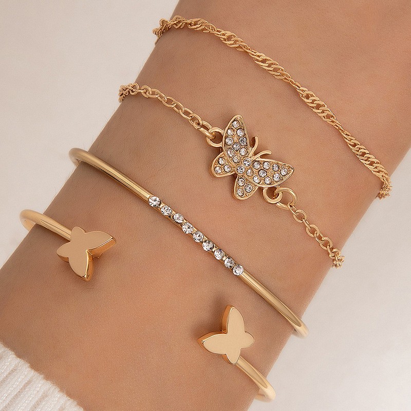 European and American Cross-border Light Luxury Jewelry Love Love Leaves Diamond Four-layer Bracelet Butterfly Knot Opening Bracelet Set for Women