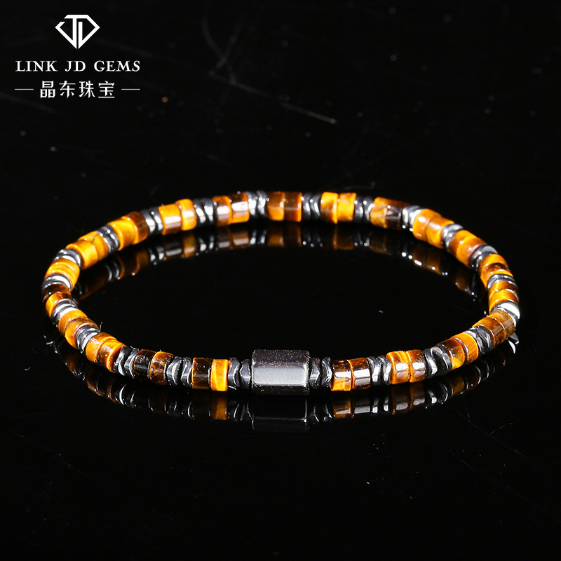 Jingdong Jewelry Natural Black Gallstone with Yellow Tiger Eye Mixed String Spacer Bracelet European and American Cross-border Men's and Women's Bracelet