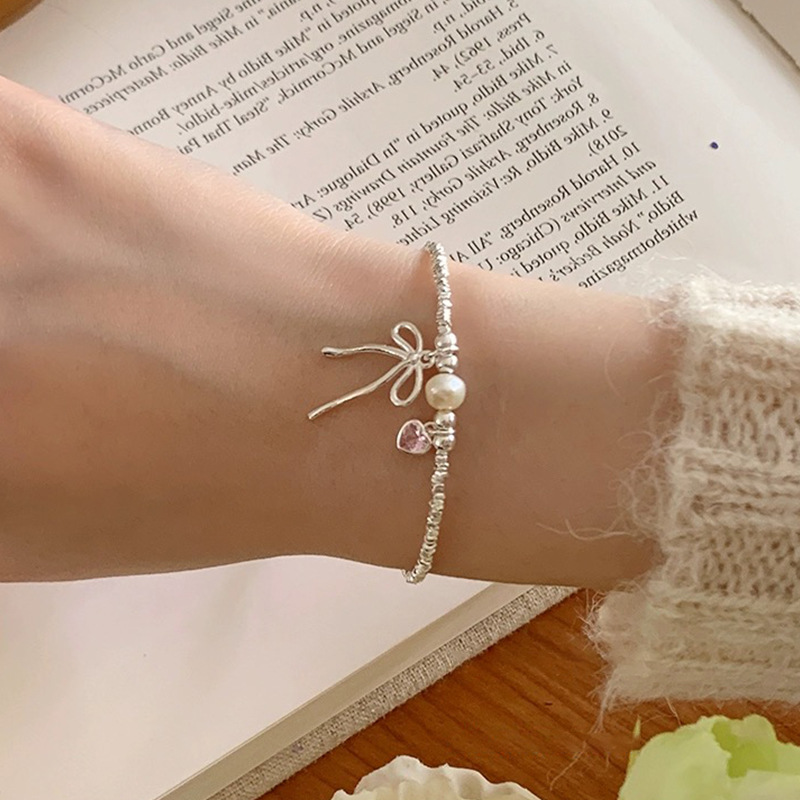 Niche Design Sense Broken Silver Metal Bow Love Bracelet Women's Sweet Personality All-match Elegant Fashion Bracelet