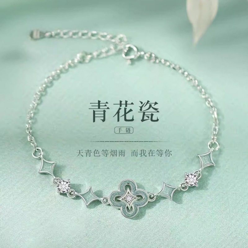 Blue and White Porcelain Bracelet Women's Simple Fashion High-end Glue Dropping Bracelet Niche Design All-match Light Luxury Valentine's Day Gift