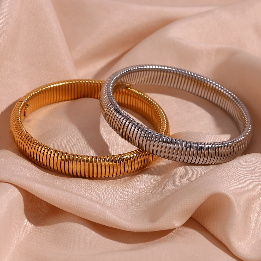 European and American Fashion Simple Niche Bracelet Jewelry Stainless Steel 18K Gold Plated 10mm Single Layer Elastic Snake Chain Bracelet for Women