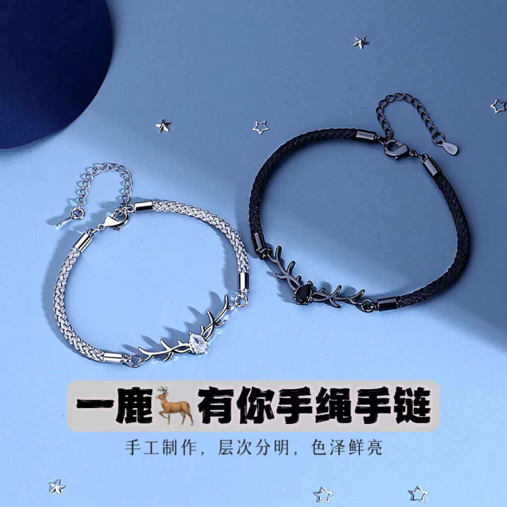 A deer has you lovers bracelet long-distance love Valentine's Day gift Korean ins men's and women's hand rope Diamond antler bracelet